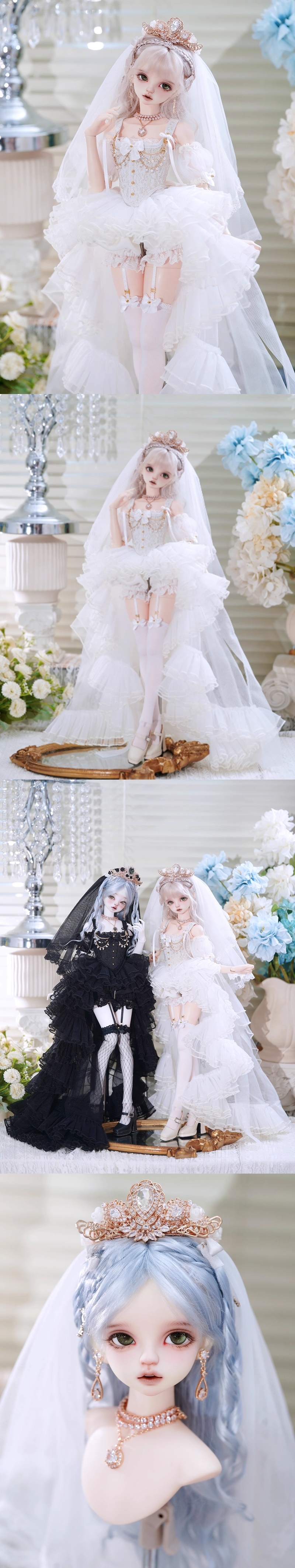 光の加減でさりげなくきらめく装飾と、ふんわり広がるシルエットが、ドールをまるで貴族の舞踏会に招かれたヒロインのように演出してくれます。👑💎